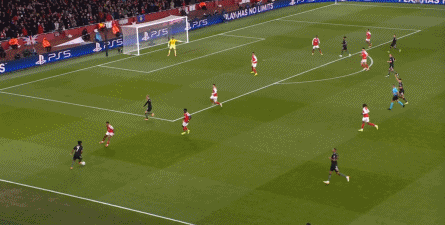 在这场比赛,萨卡的无球位置依然很深,防守职责依然很重: