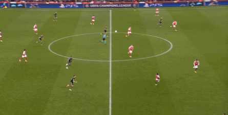 而且以中场球员的基本功,能比常规的中锋在回撤时送出更精准的传球,本场比赛阿森纳的第一次进攻威胁,便是回撤的梅里诺联系到了特罗萨德: