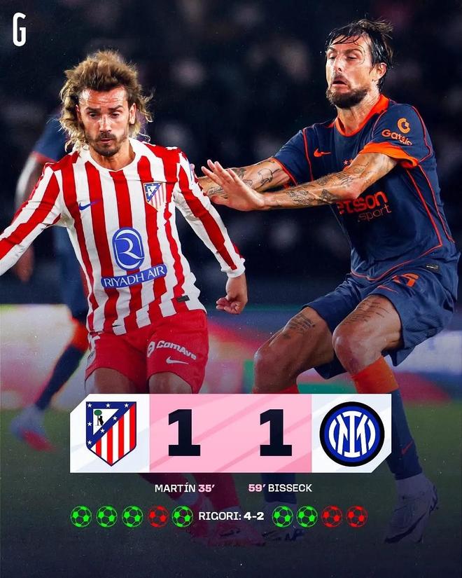 今天凌晨,国米与马竞利用国际比赛日的间歇期踢了一场热身赛,双方都在多名国脚被征召的情况下最大程度上派出最强阵,国米这边除了生病的索默外,剩余的一线队员和几名二队球员先后出场亮相。最终双方90分钟握手言和1:1,国米点球2:4败下阵来。不过,比赛结果不重要,国米收获了400万欧的参赛奖金,多名年轻球员也都得到了锻炼,一场比赛也让我们看到了很多惊喜与失望!